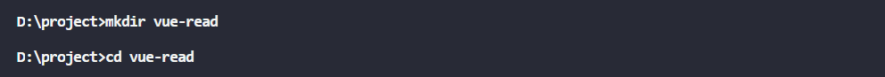 1、在d盘下创建文件夹 mkdir vue-read,进入该目录 cd vue-read