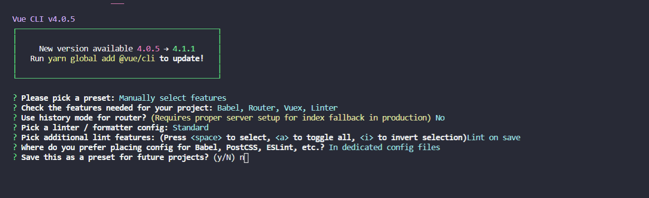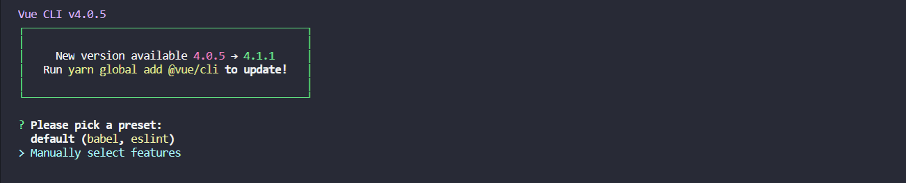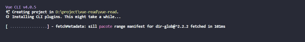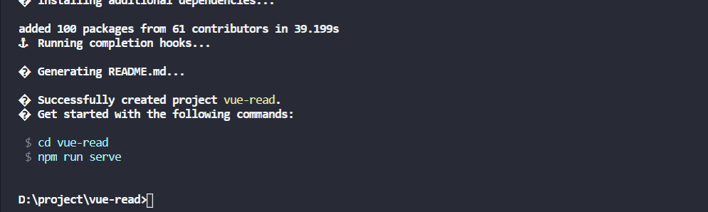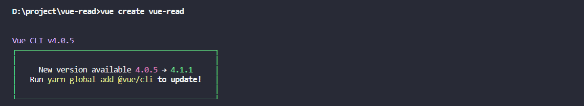 2、使用vue 命令 vue create vue-read 行创建工程