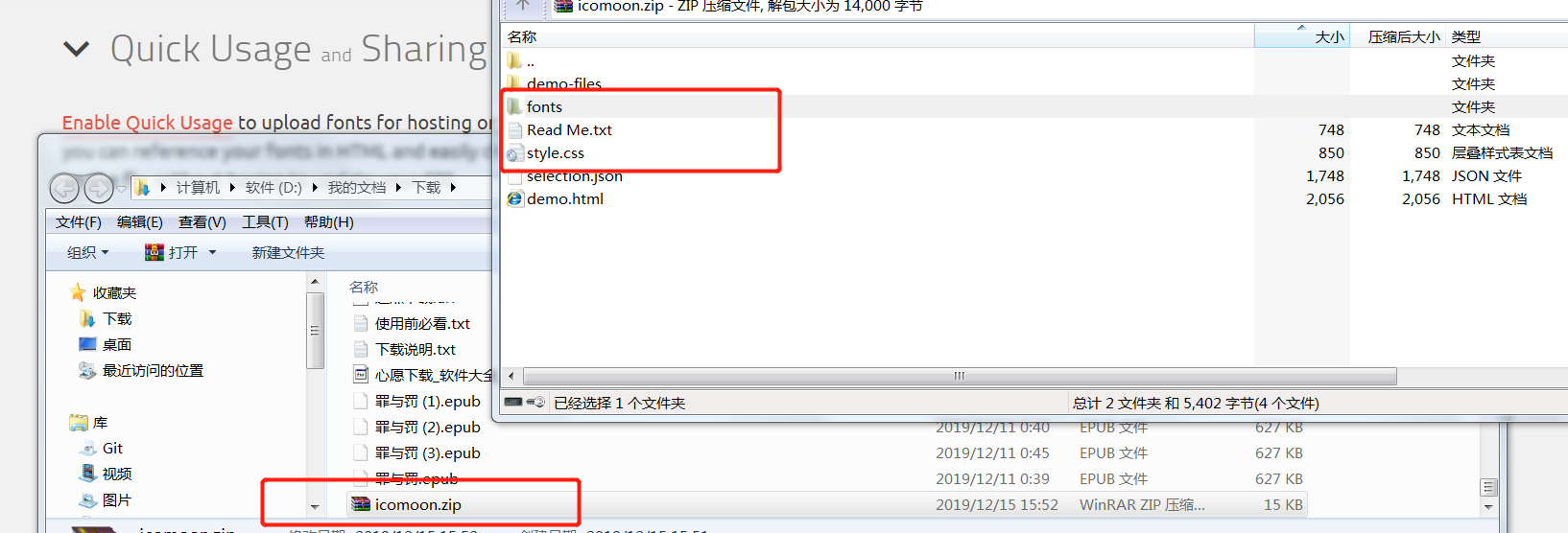 4,选中图标,选择font download按钮,下载文件到本地